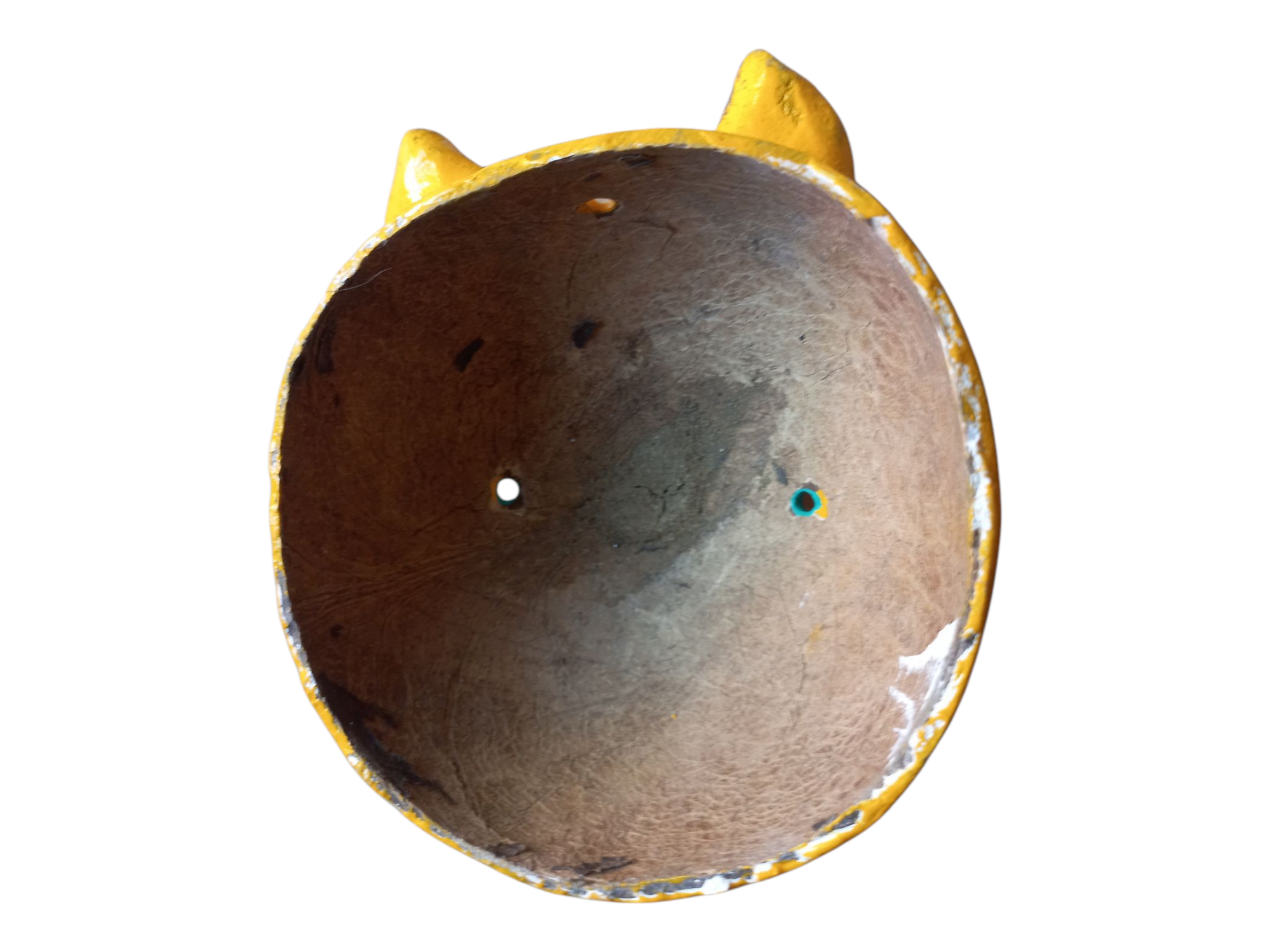 Please note that each mask is unique. So even when you get this design, each mask is made of coconut shell, so the size will be slightly different. Also, the colors will vary slightly due to the hand painting work. Other materials that we use, depending on the model, are: natural shells of various fruits, natural seeds, glue-based paste, wood, clay, natural fibers such as iztle, colored ribbons, metal bells, bottle caps and copper wires for making earrings. Due to the materials used to make the masks, we can say that they are friendly to nature and that most of their components are recycled.